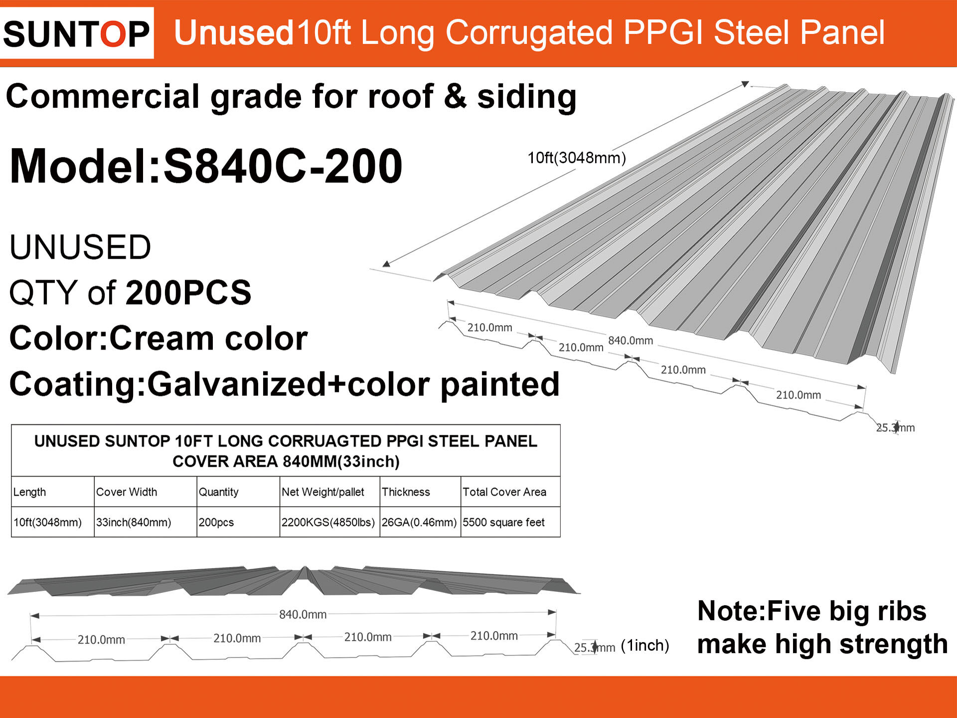 5 Big ribbs Commercial grade for roof and siding